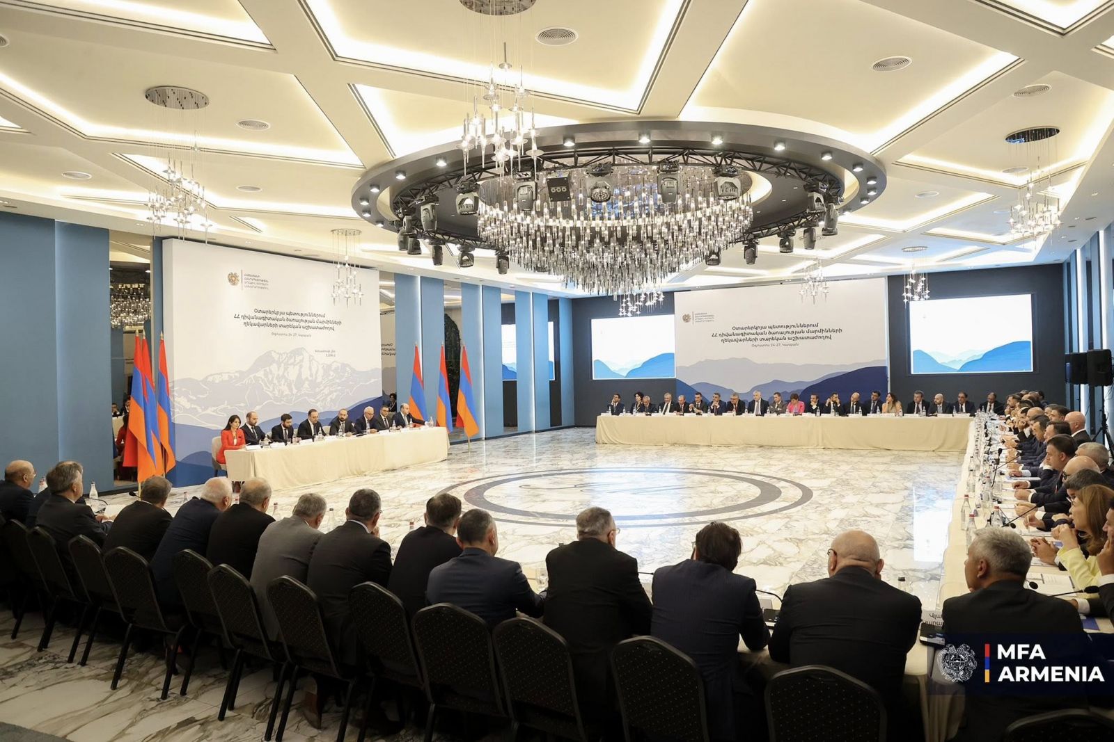 ՀՀ ԱԳՆ-ից հայտնում են, որ Կապանում դեսպանաժողովի աշխատանքները շարունակվել են ԱԳ նախարար Արարատ Միրզոյանի հետ քննարկումով։