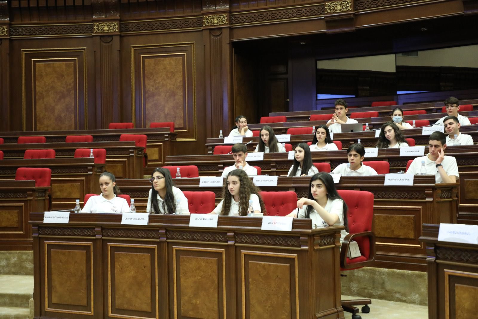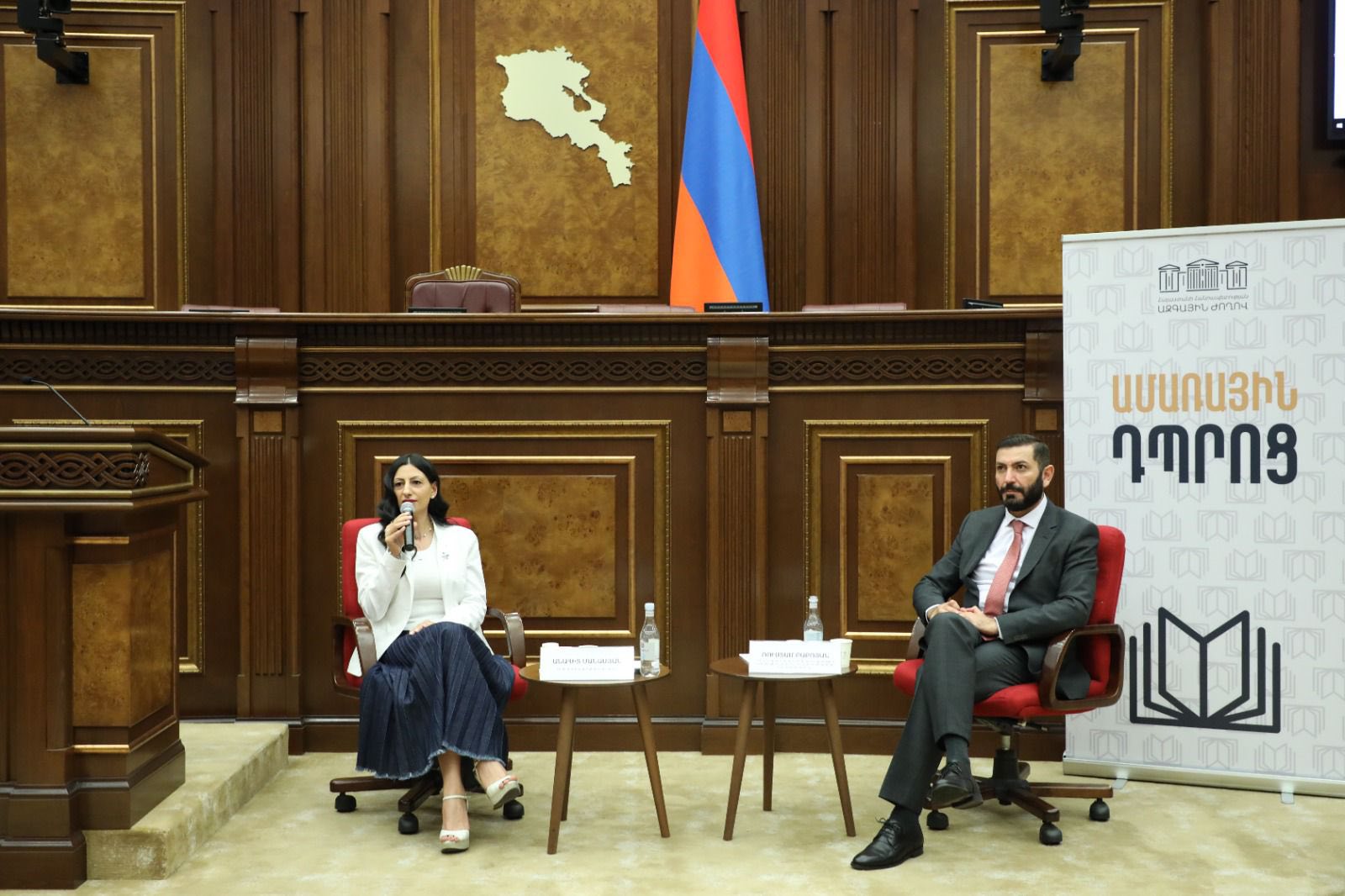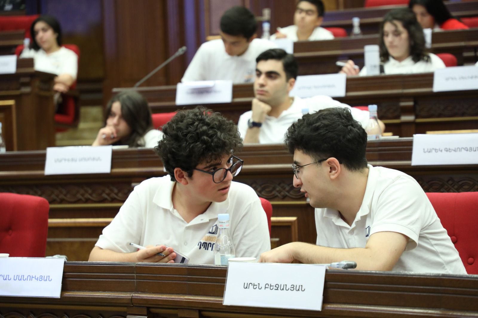 Հանդիպումը կրել է հարցուպատասխանի ձևաչափ: Անահիտ Մանասյանն ու ՀՀ ԱԺ մարդու իրավունքների պաշտպանության և հանրային հարցերի մշտական հանձնաժողովի նախագահի պաշտոնակատար Ռուստամ Բաքոյանը երեխաների հետ, ի թիվս այլնի, քննարկել են խտրականություն դեմ պայքարին, վաղ և հարկադիր ամուսնություններին, մարդու իրավունքների կրթությանը, հաշմանդամություն ունեցող անձանց իրավունքներին, ընտանեկան բռնության դեմ պայքարին, խոսքի ազատությանը վերաբերելի և այլ հարցեր: