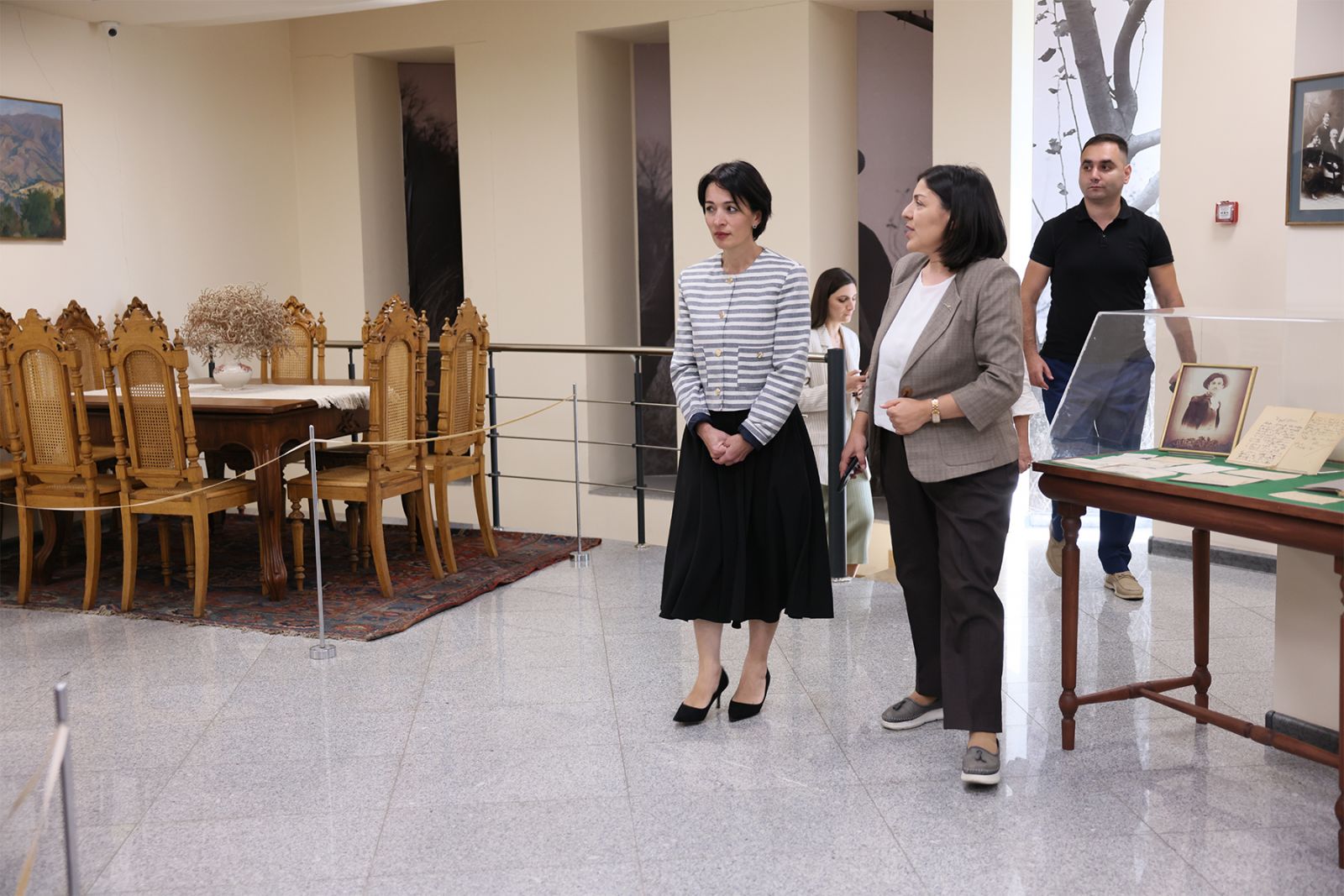 Թանգարանի տնօրեն Լուսինե Ղարախանյանի ուղեկցությամբ նախարարը շրջայց է կատարել կենտրոնում, ծանոթացել ցուցանմուշներին, ցուցադրման պայմաններին: