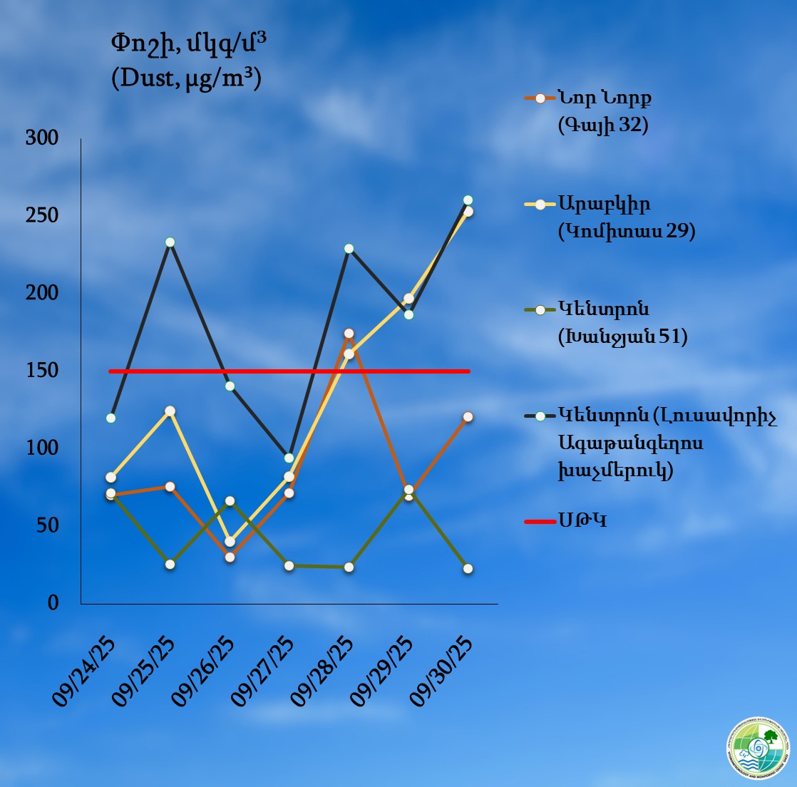 Հիդրոօդերևութաբանության և մոնիթորինգի կենտրոնը ներկայացրել է Երևանում մթնոլորտային օդի որակը սեպտեմբերի 24-30-ը։