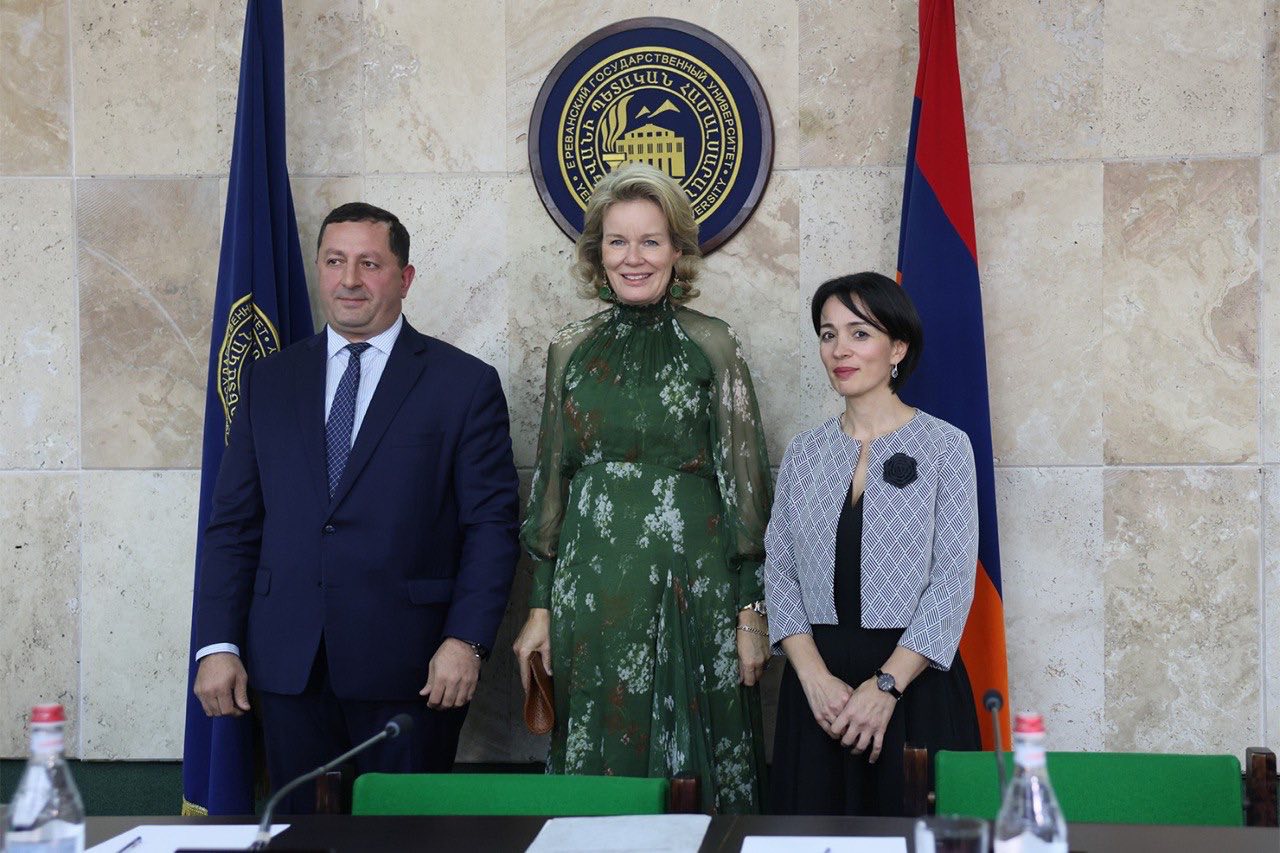 Բելգիայի թագուհի Մաթիլդան Հայաստանի Հանրապետություն կատարած աշխատանքային այցի շրջանակում կրթության, գիտության, մշակույթի և սպորտի նախարար Ժաննա Անդրեասյանի ուղեկցությամբ այսօր այցելել է Երևանի պետական համալսարան: Այս մասին տեղեկացնում են ԿԳՄՍՆ-ից: