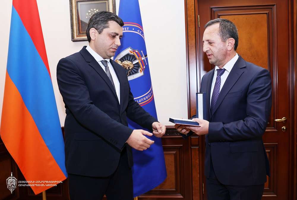Աշխատանքային խորհրդակցության ավարտին Կոմիտեի նախագահը օպերատիվ-հետախուզական գործառույթներ իրականացնող ստորաբաժանումների երեք ծառայողի պարգևատրել է մեդալներով՝ օրինականության և իրավակարգի ամրապնդման գործում ներդրած ավանդի, մասնագիտական բարձր պատրաստվածության, բարեխիղճ և արդյունավետ աշխատանքային գործունեություն ծավալելու համար: