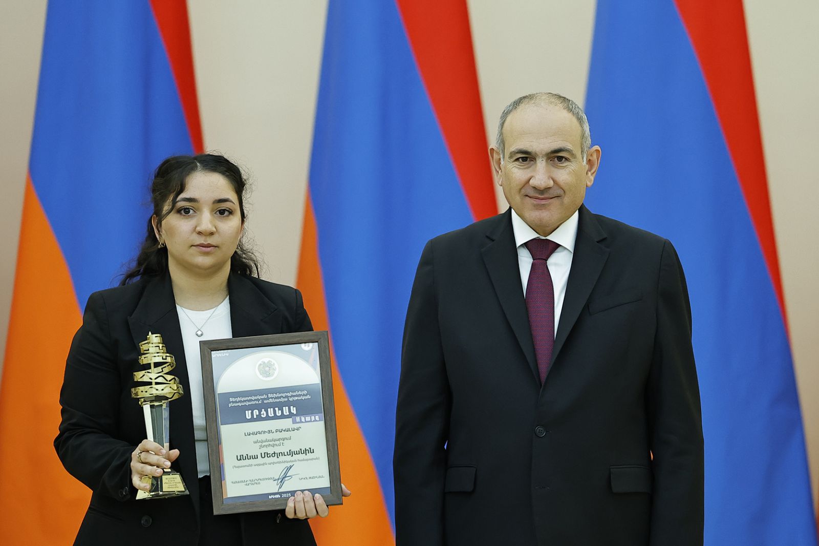 Մրցանակները հանձնել է Նիկոլ Փաշինյանը: Վարչապետը շնորհավորել է մրցանակակիրներին և նշել, որ ամենամեծ մարտահրավերը կյանքն է: Նիկոլ Փաշինյանի դիտարկմամբ՝ մարտահրավերները պետք է ընկալել որպես կյանքի մաս. «Երբեմն, երբ, խոսում ենք մարտահրավերի մասին, մենք դա ընկալում ենք որպես արտառոց մի բան: Իմ կարծիքով՝ մենք արտառոց ենք ընկալում այն երկու պատճառով: Առաջինը, որ մենք չենք առերեսվում, որ մարտահրավերը հենց ինքը կյանքն է, և երկրորդ՝ ինչքան բարդ է մարտահրավերը, դա նշանակում է, մենք ինչ-որ բան չգիտենք դրա մասին: Այսինքն՝ առնվազն չգիտենք ինչպես կառավարել այդ մարտահրավերը: Եթե ինչ-որ մեկի մոտ ինչ-որ մի բան չի ստացվում, ուրեմն ինքն ինչ-որ մի բան չգիտի»։