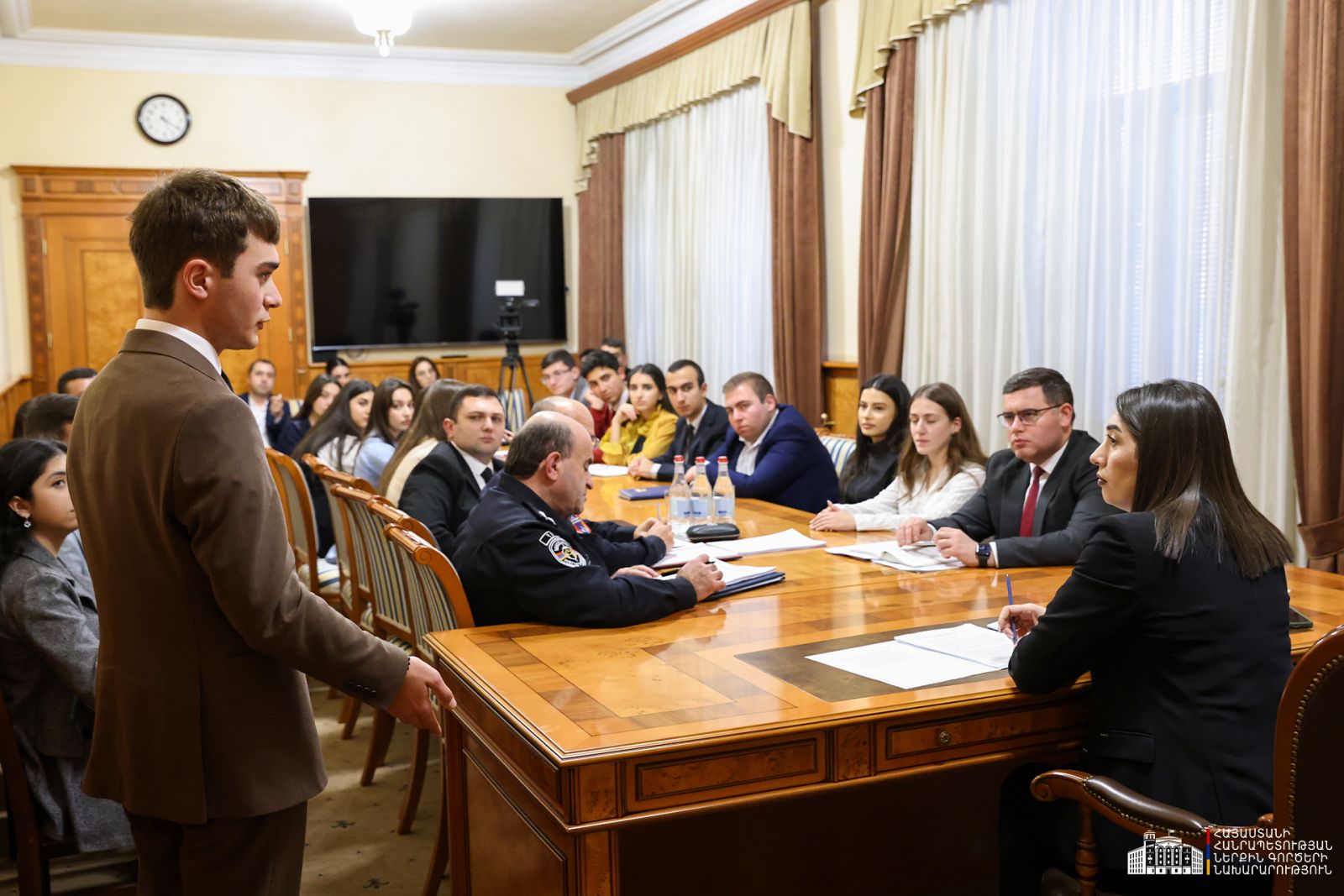 Նախարար Սարգսյանը վերահաստատել է Երիտասարդական խորհրդի անդամների հետ ակտիվ համագործակցելու հանձնառությունը, որը նպատակ ունի քննարկումների միջոցով և քաղաքացիների անմիջական ներգրավմամբ հասնել հանրությանը հուզող հարցերի լուծմանը՝ ամրապնդելով պետություն-հասարակություն կապը։