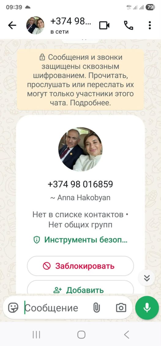 «Սիրելի հայրենակիցներ, տեղեկացնում եմ, որ կեղծ WhatsApp օգտահաշիվ է բացվել իմ անունով, որի միջոցով փորձում են կապ հաստատել տարբեր անձանց հետ, ապատեղեկատվություն տարածել և հնարավոր է՝ կորզել անձնական կամ այլ տվյալներ։