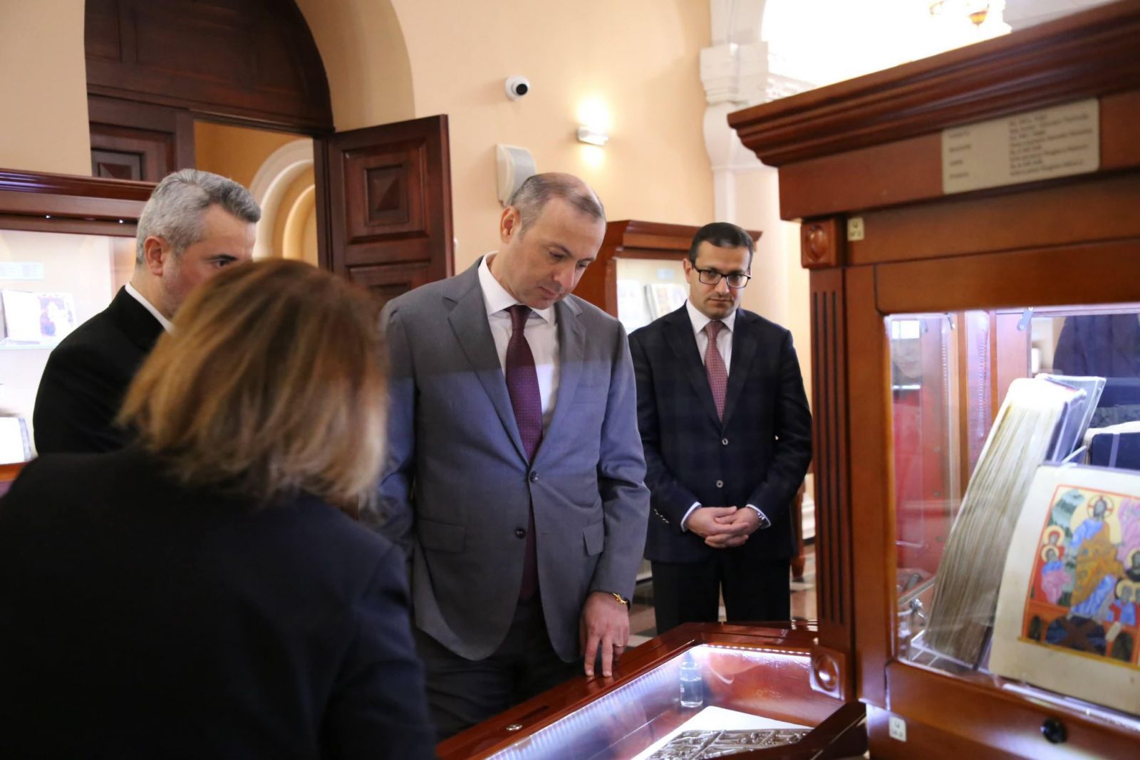 «Արմեն Գրիգորյանը հիմնական և ժամանակավոր ցուցադրություններին ծանոթանալուց զատ՝ ծանոթացել է նաև անվտանգային և վերականգնման ենթակառուցվածքներին, այցելել է ձեռագրերի կենսաքիմիական հետազոտությունների լաբորատորիա: