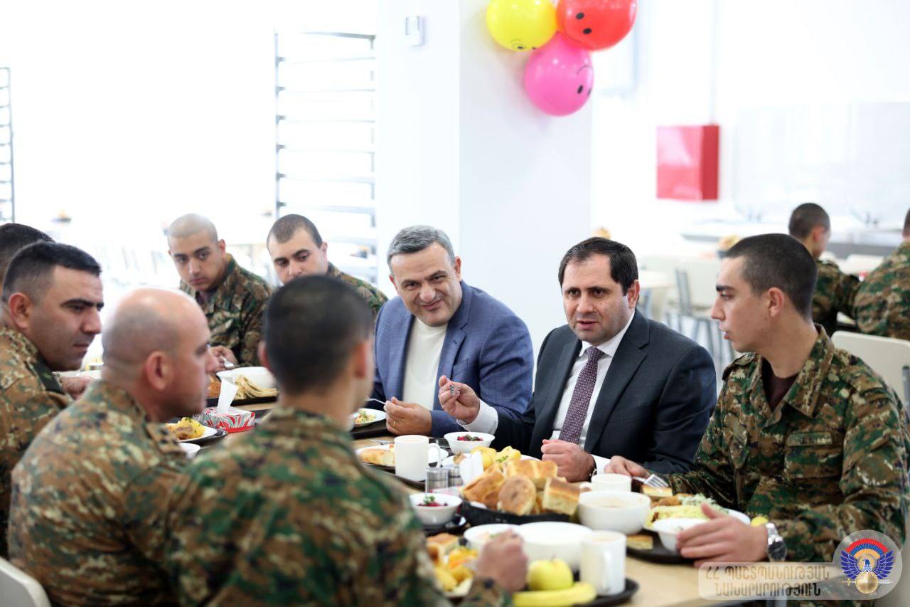 «Ծանոթացել եմ նոր տեխնոլոգիաներով հագեցած ճաշարանի ընձեռած հնարավորություններին և պայմաններին, ճաշել զինծառայողների հետ, հետաքրքրվել նրանց տպավորություններով»,- գրել է նա։