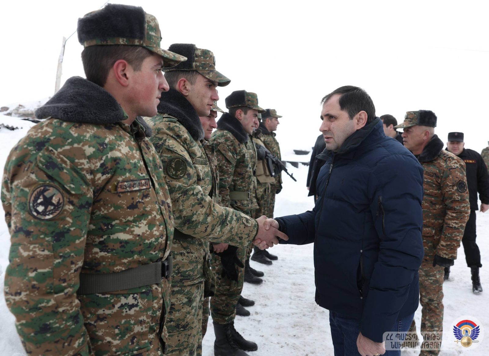 Պաշտպանության նախարար Սուրեն Պապիկյանը Ամանորի նախաշեմին Վայոց ձորի մարզպետ Վահագն Արսենյանի, ՀՀ Ազգային ժողովի պատգամավոր, ԱԺ Եվրոպական ինտեգրման հարցերի մշտական հանձնաժողովի նախագահ Արման Եղոյանի, զորամիավորման հրամանատար, գնդապետ Գագիկ Պողոսյանի և բարձրաստիճան զինվորականների ուղեկցությամբ այցելել է բարձրադիր գոտում գտնվող բանակային դիրքեր։ Այդ մասին տեղեկանում ենք նախարարի Ֆեյսբուքի էջից: