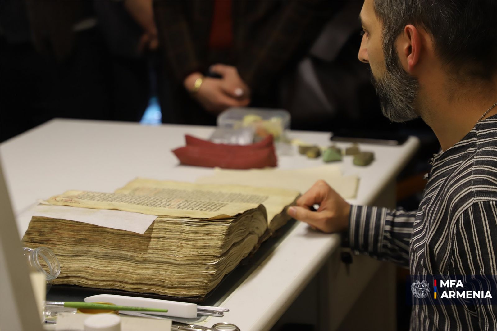 Միջոցառման ընթացքում հյուրերը շրջայց են կատարել թանգարանում, ծանոթացել հայկական ձեռագրերի հարուստ հավաքածուին և դրանց պատմությանը, այնուհետև այցելել ինստիտուտ՝ ուսումնասիրելու հին ձեռագրերի պահպանման ու մշակման ավանդույթները և ծանոթանալու ձեռագրագիտության առանձնահատկություններին: