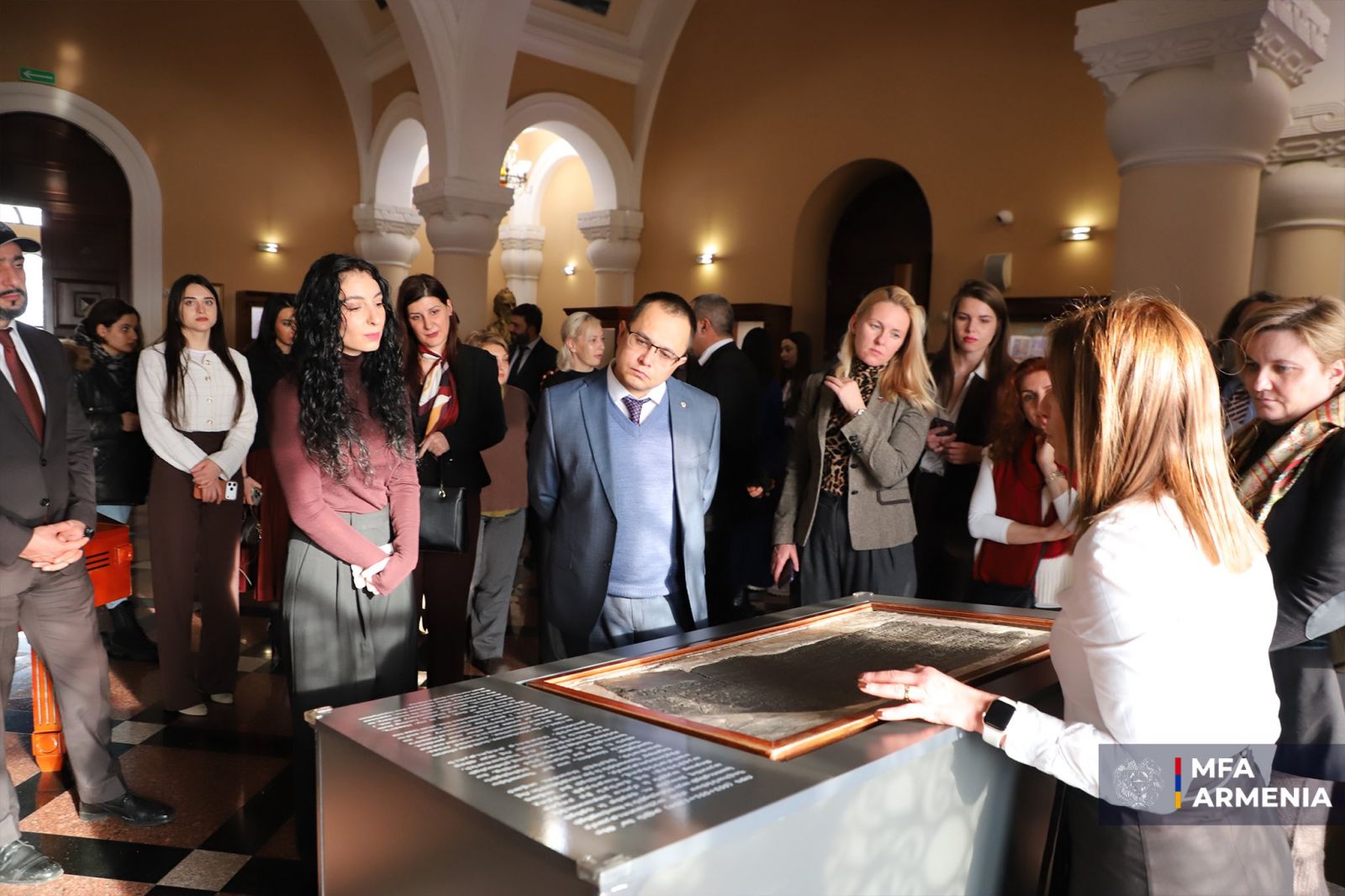 Հունվարի 20-ին Մատենադարան Մ. Մաշտոցի անվան հին ձեռագրերի գիտահետազոտական ինստիտուտում տեղի է ունեցել Հայաստանի Հանրապետությունում հավատարմագրված օտարերկրյա դիվանագիտական ներկայացուցչությունների համար ՀՀ արտաքին գործերի նախարարության կազմակերպած մշակութային դիվանագիտության թեմատիկայով հերթական միջոցառումը։ Այդ մասին հայտնում են ԱԳՆ-ից: