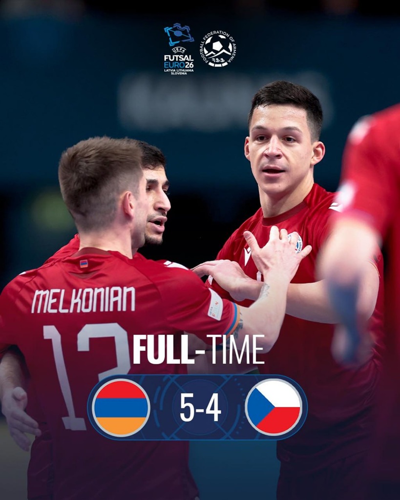 Ֆուտզալի Հայաստանի ազգային հավաքականը Ուկրաինայի հետ պատմական հաղթանակից հետո այսօր առավելության հասավ նաև Չեխիայի ընտրանու նկատմամբ: