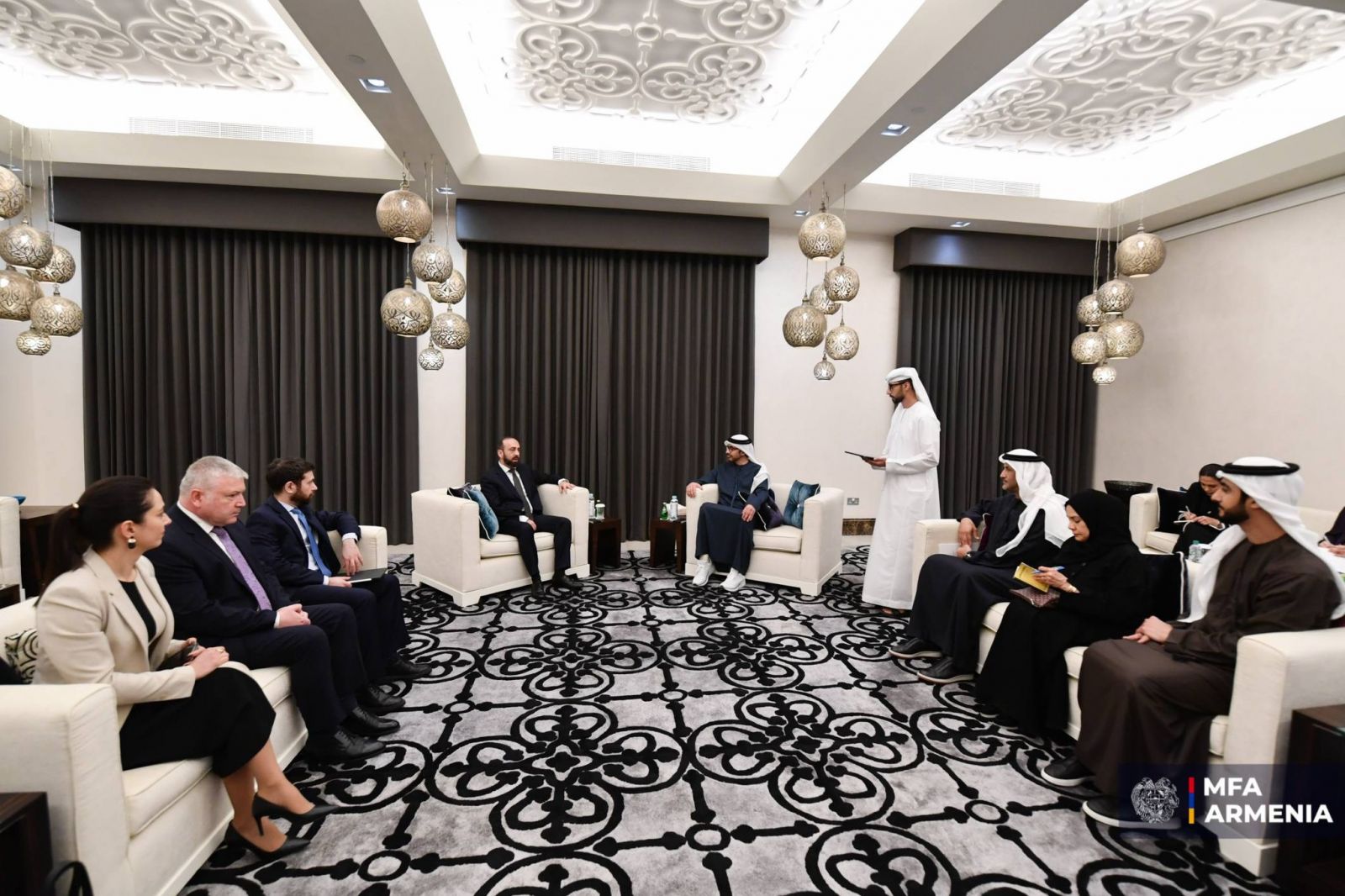 ՀՀ ԱԳ նախարար Արարատ Միրզոյանը հանդիպում է ունեցել Արաբական Միացյալ Էմիրությունների փոխվարչապետ, ԱԳ նախարար շեյխ Աբդալլահ բին Զայեդ Ալ Նահյանի հետ, հայտնում են նախարարության մամուլի ծառայությունից։