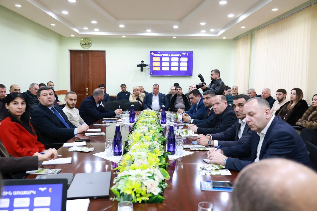 ՀՀ էկոնոմիկայի նախարար Գևորգ Պապոյանը փետրվարի 6-ին Տավուշի մարզպետի աշխատակազմում, մարզպետ Հայկ Ղալումյանի հետ, հանդիպել է զբոսաշրջության ոլորտում գործունեություն ծավալող 30-ից ավելի գործարարների հետ։