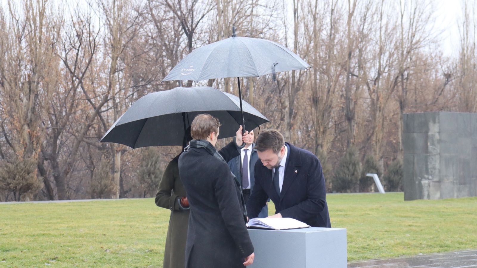 Ջեյ Դի Վենսը ծաղկեպսակ է դրել Հայոց ցեղասպանության զոհերի հիշատակը հավերժացնող հուշակոթողին, այնուհետև հյուրերը ծաղիկներ են դրել անմար կրակի մոտ և մեկ րոպե լռությամբ հարգել Հայոց ցեղասպանության անմեղ զոհերի հիշատակը: