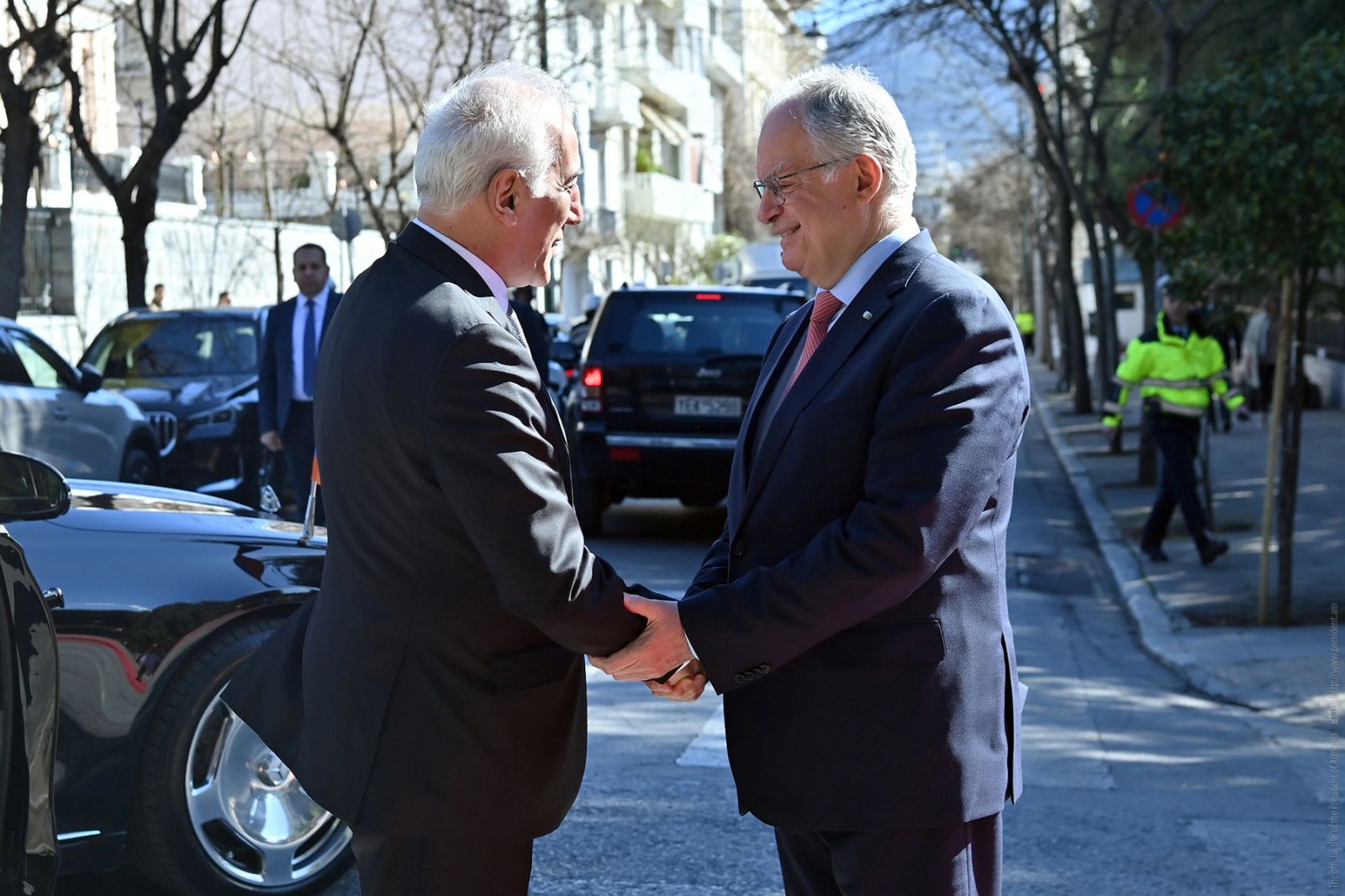 Հունաստանի նախագահի նստավայրում տեղի է ունեցել պետական այցով Աթենք ժամանած նախագահ Վահագն Խաչատուրյանի դիմավորման պաշտոնական արարողությունը, որին հաջորդել է նախագահներ Վահագն Խաչատուրյանի և Հունաստանի նախագահ Կոստանտինոս Տասուլասի առանձնազրույցը։