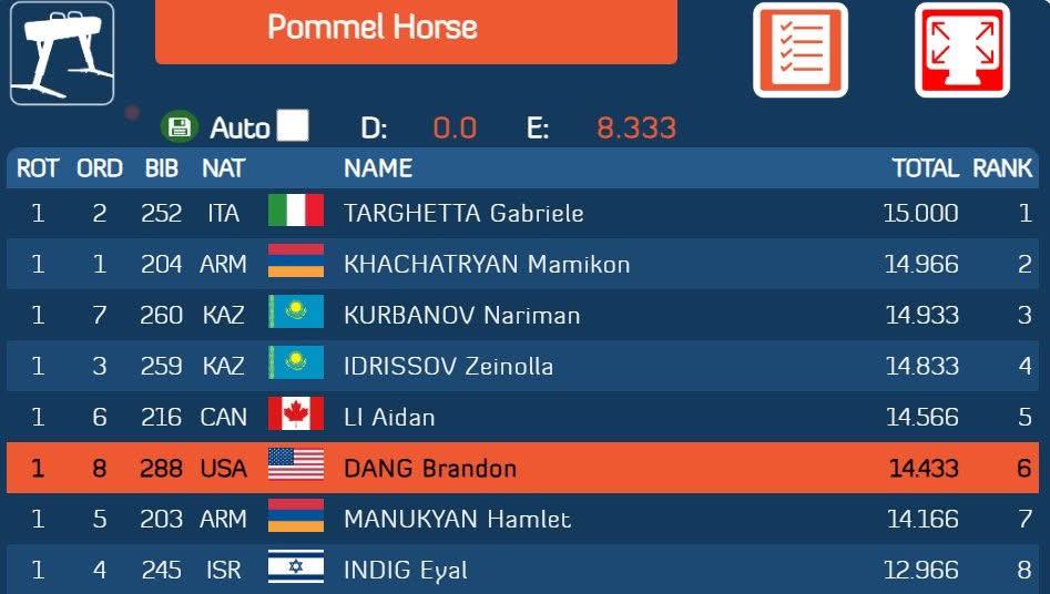 Ավելի վաղ հայտնել էին, որ օղակներով վարժության ժամանակ Հայաստանը ներկայացնող Արթուր Ավետիսյանն առաջին տեղն է զբաղեցրել։