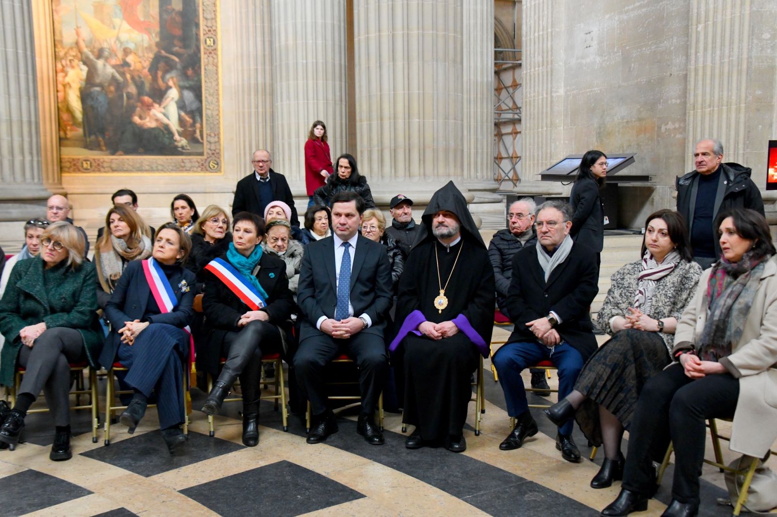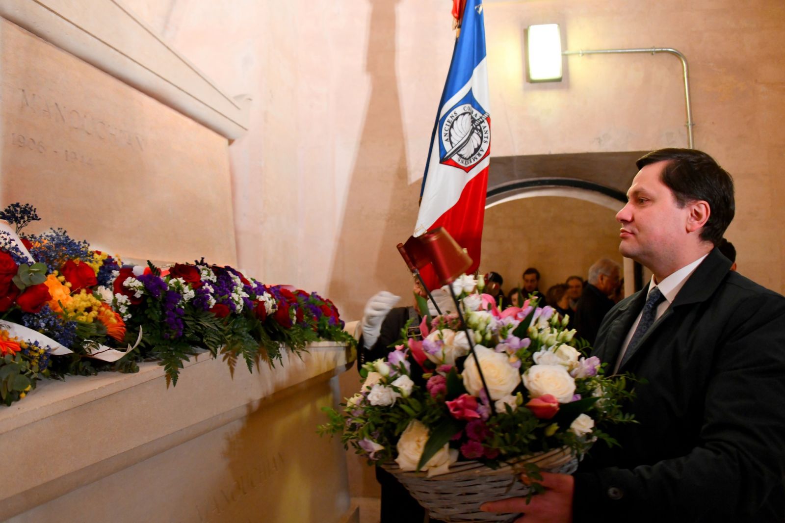 Միջոցառմանը ելույթներով հանդես են եկել դեսպան Արման Խաչատրյանը, ANACRA-ի նախագահ Լեոն Հովնանյանը և Միսաք Մանուշյանի պանթեոնիզացման կոմիտեի նախագահ Ժան-Պիեռ Սակունը։ Աղոթքով հանդես է եկել Ֆրանսիայի հայոց թեմի առաջնորդ գերաշնորհ Տ. Գրիգոր եպիսկոպոս Խաչատրյանը։ Արարողությունն ավարտվել է ծաղկեպսակների զետեղմամբ և Ֆրանսիայի պետական օրհներգի կատարմամբ։