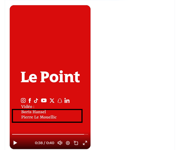 Տեսանյութի վրա նշված լոգոն ֆրանսիական հայտնի լրատվամիջոցի անվանումն է՝ Le Poin»։ Այն քաղաքական և հասարակական շաբաթաթերթ է, որը համարվում է Ֆրանսիայի երեք խոշորագույն լրատվական ամսագրերից մեկը։