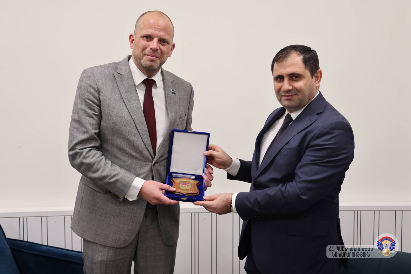 Պաշտպանության նախարար Սուրեն Պապիկյանը Բրյուսել կատարած աշխատանքային այցի շրջանակում մարտի 12-ին հանդիպել է Բելգիայի Թագավորության պաշտպանության և արտաքին առևտրի նախարար Թեո Ֆրանկենի հետ։ Այդ մասին Ֆեյսբուքում հայտնել է նախարարը: