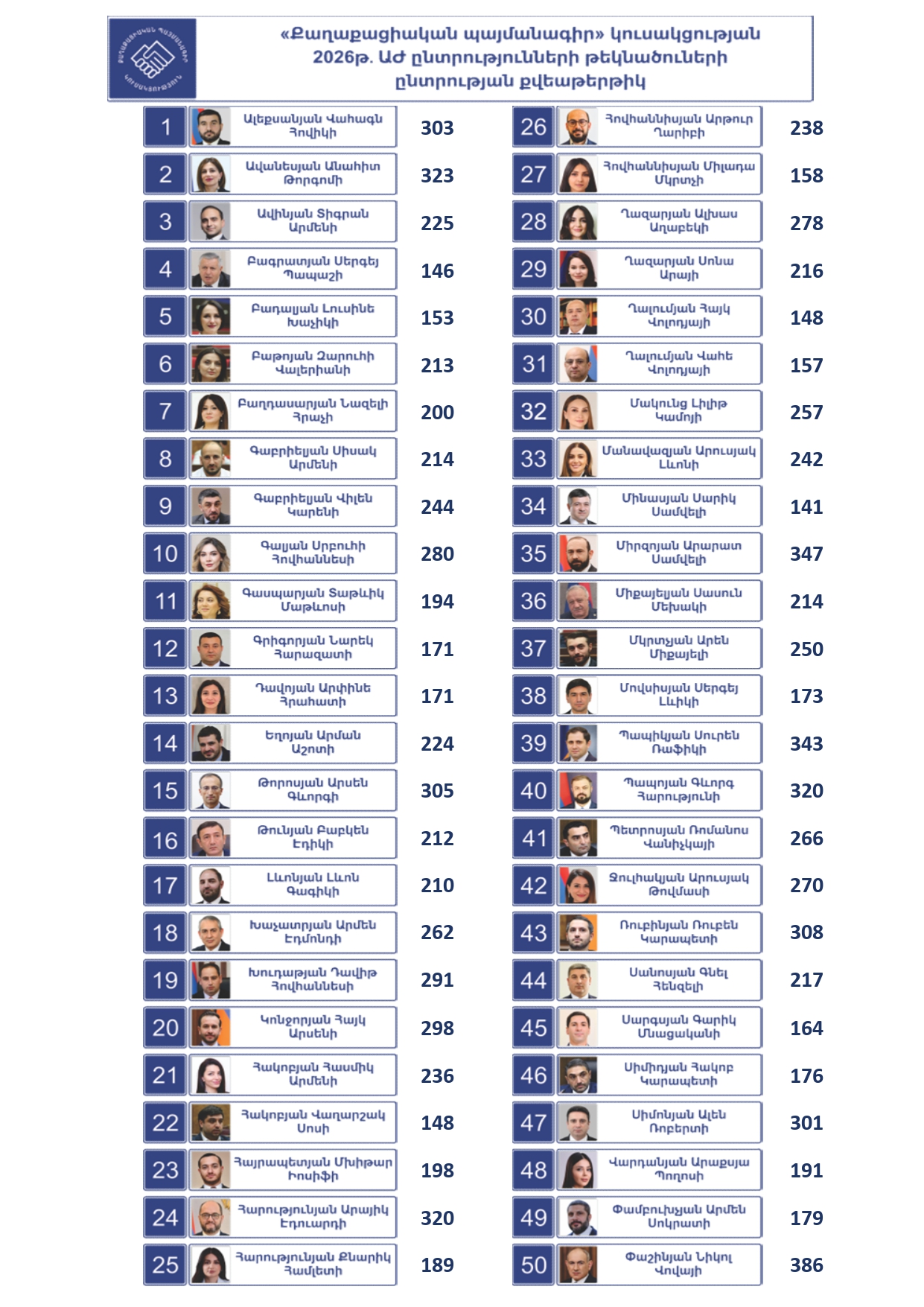 Նախնական արդյունքները՝ 21:00-ի դրությամբ․ ՔՊ-ի թեկնածուների ընտրությունը