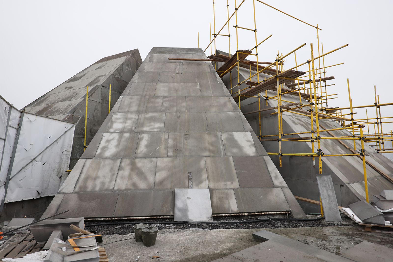 Ցեղասպանության հուշահամալիրի նախագծի հեղինակային խմբի ճարտարապետների և կապալառու շինարարական ընկերության ներկայացուցիչները նախարարին ներկայացրել են աշխատանքների ընթացքը՝ նշելով, որ մույթների նորոգումը, ինչպես նաև ամրացման և բարեկարգման մնացած աշխատանքներն ավարտական փուլում են և ընթանում են ըստ նախագծի։ Նախարարը հերթական անգամ ընդգծել է աշխատանքների որակի ու ժամկետների պահպանման խնդիրը։