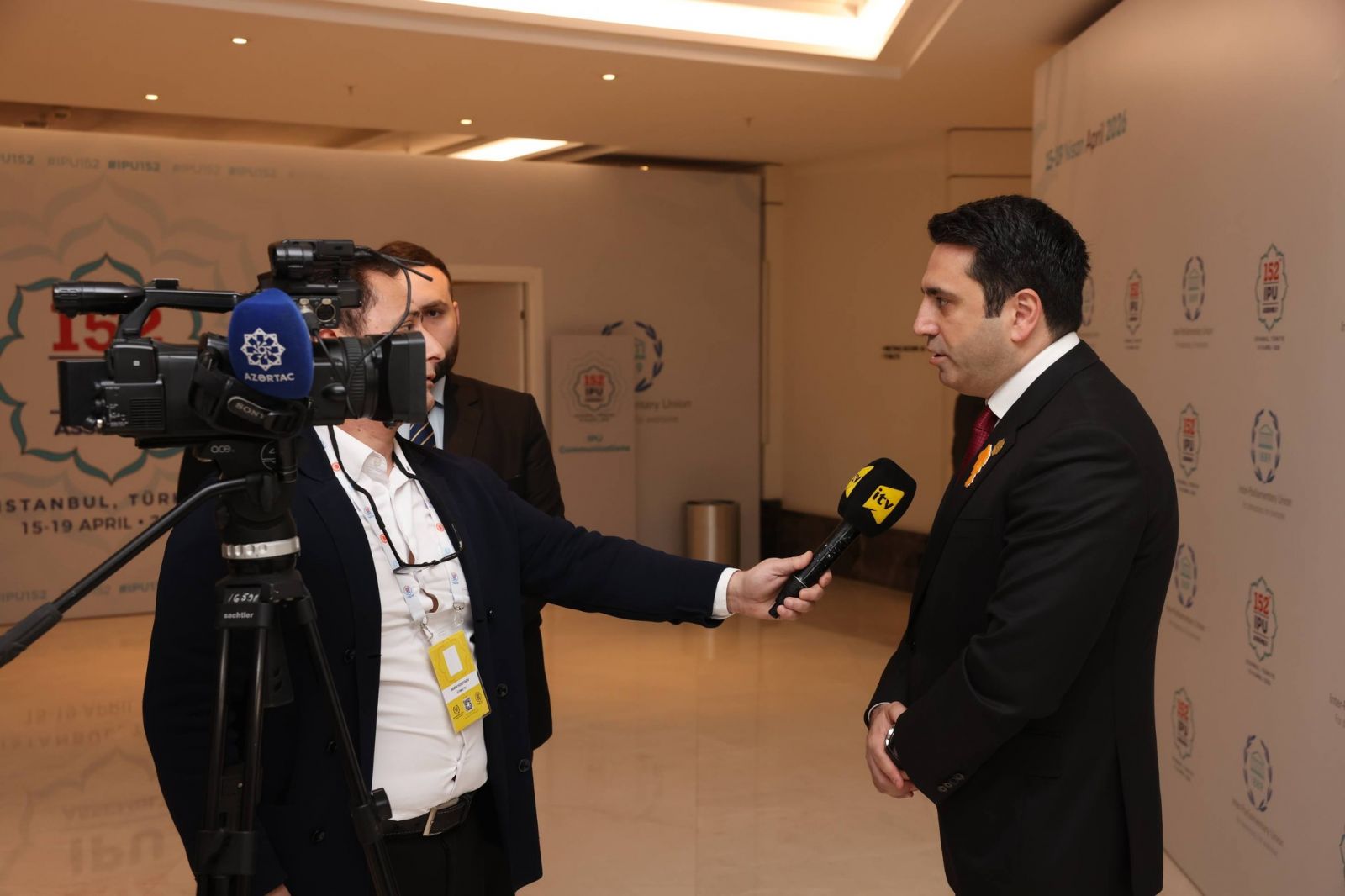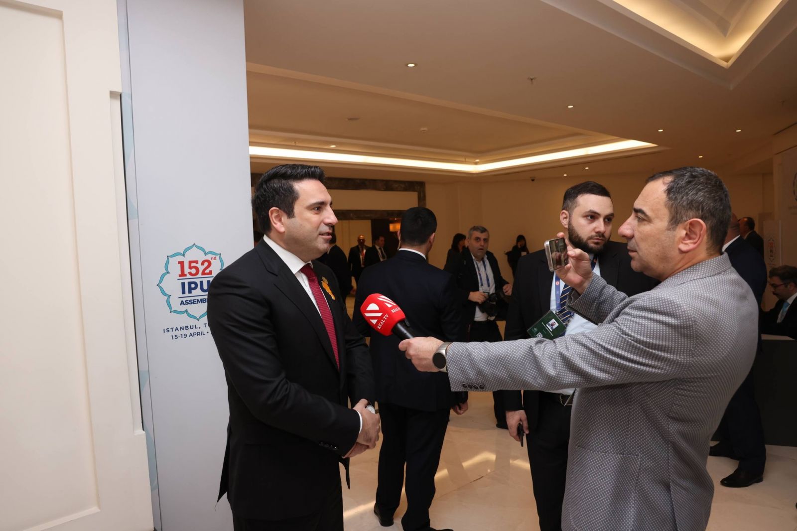 ԱԺ նախագահ Ալեն Սիմոնյանը Ստամբուլում պատասխանել է ադրբեջանական լրատվամիջոցների հարցերին: