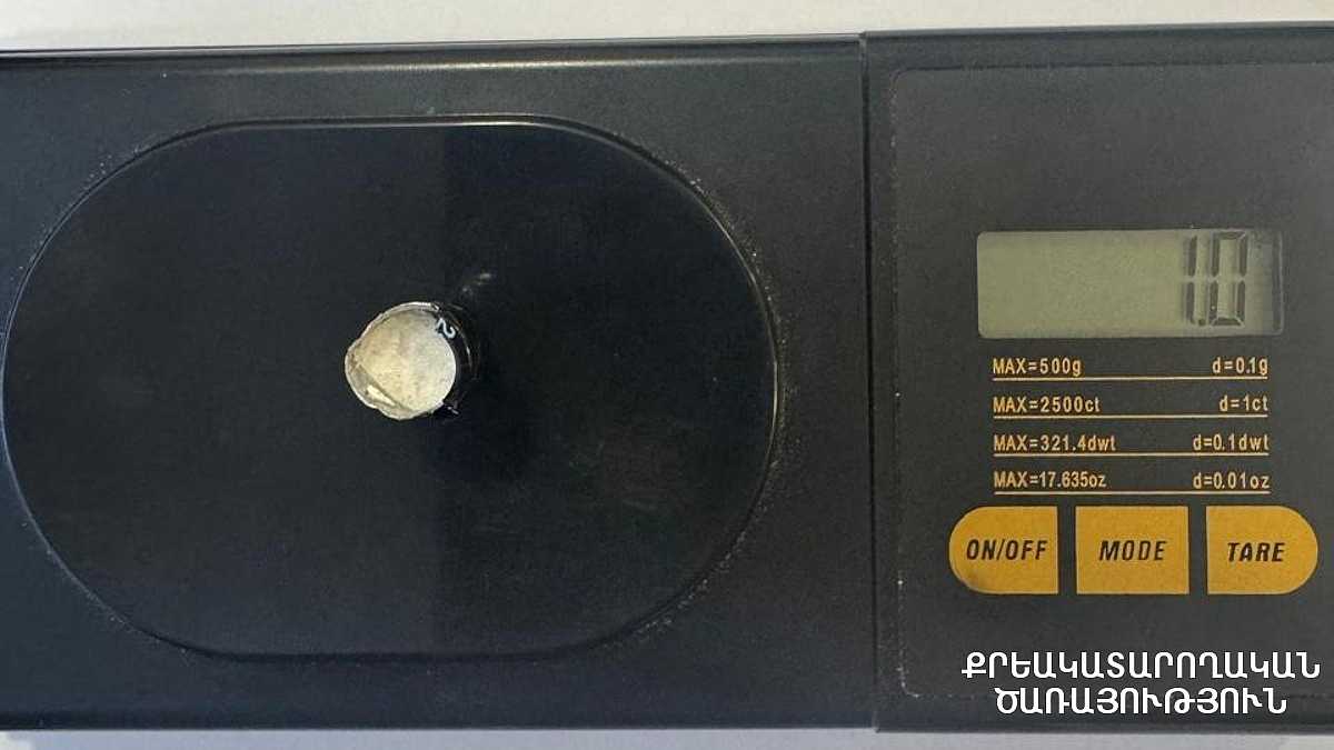 Զննության արդյունքում ալեհավաքում առկա կոնդենսատորի միջից ծառայողները հայտնաբերել են թմրամիջոցի նմանվող, ընդհանուր 1,7 գրամ քաշով, սպիտակ, բյուրեղանման զանգված։