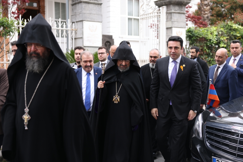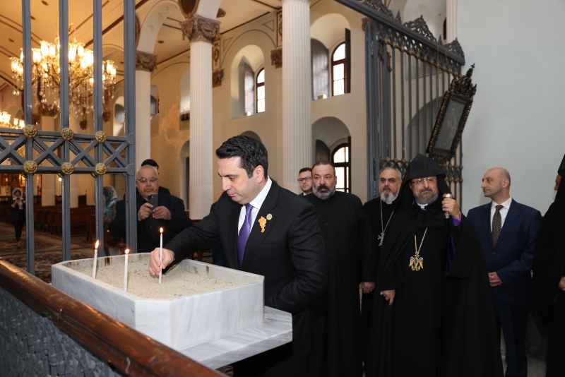 ՀՀ ԱԺ նախագահն Ամենապատիվ Տեր Սահակ Բ. արքեպիսկոպոս Մաշալյանի ուղեկցությամբ այցելել է Սուրբ Մարիամ Աստվածածին եկեղեցի, որից հետո շրջայց իրականացրել Պատրիարքության տարածքում: