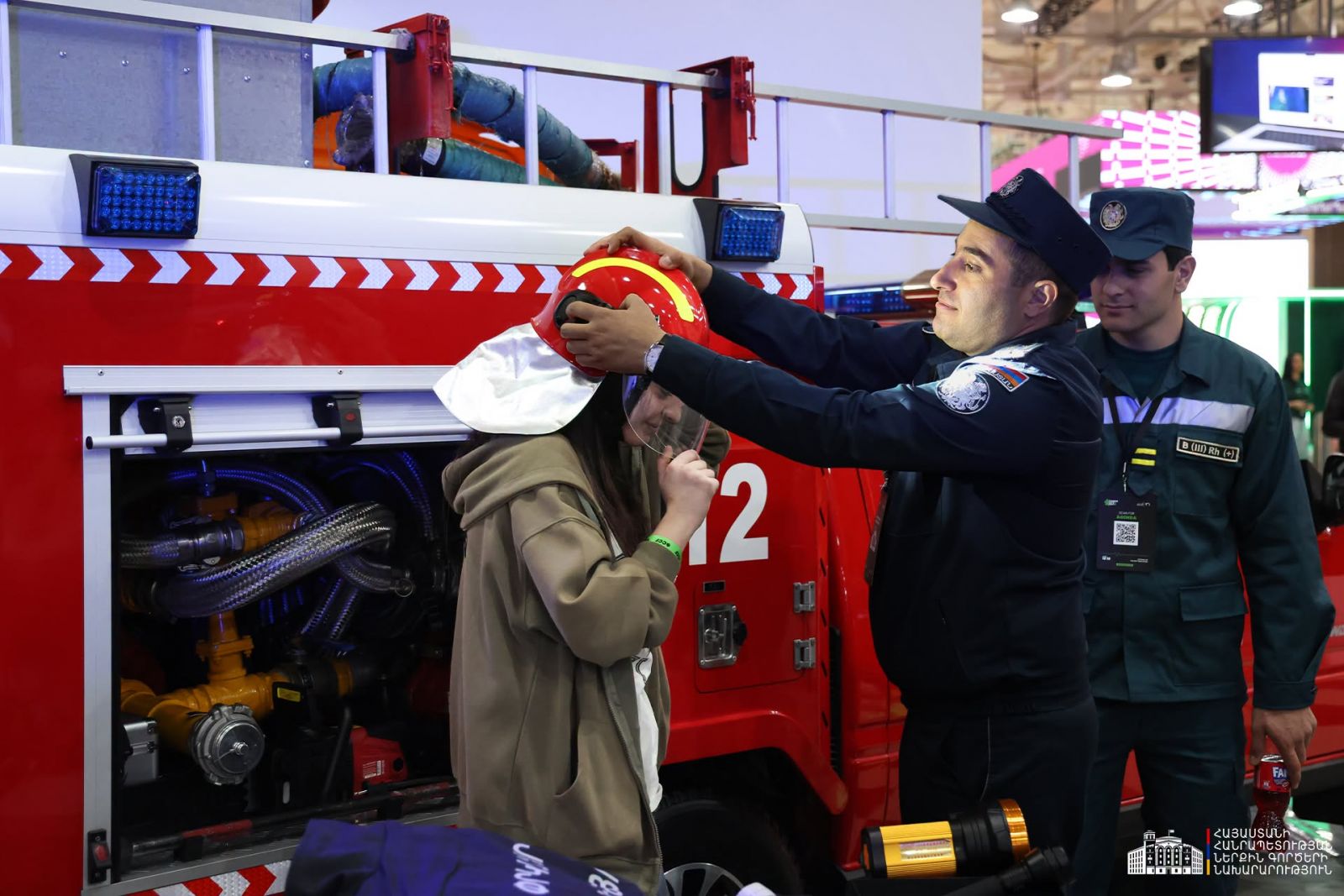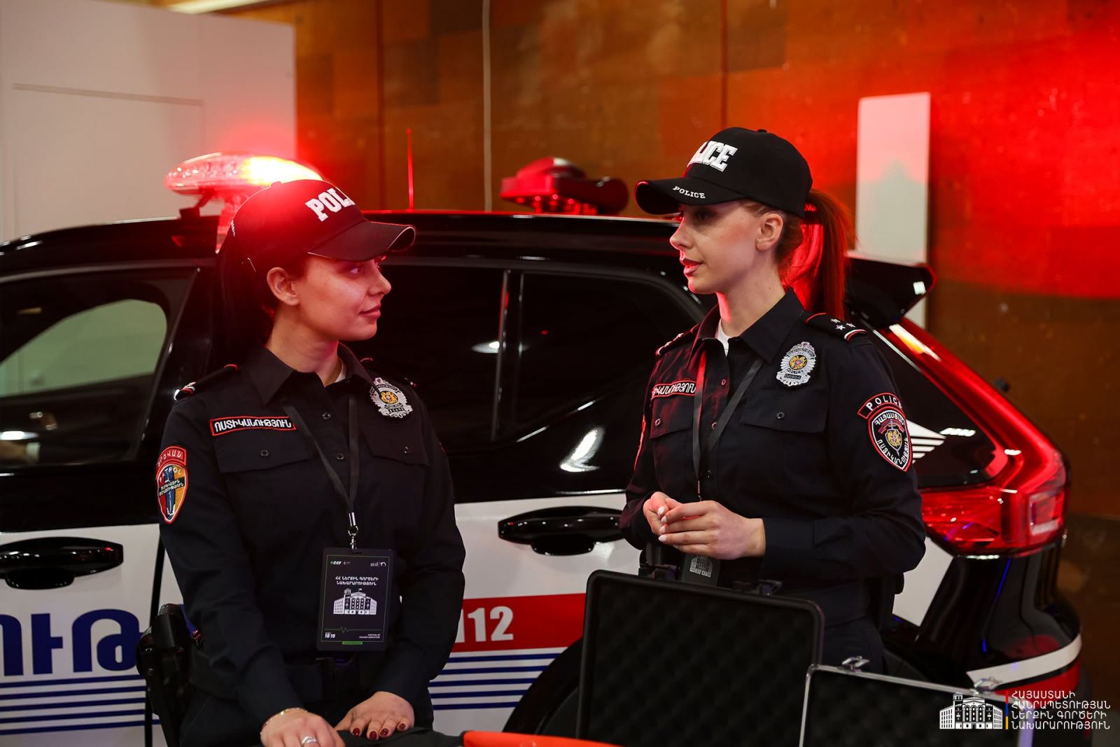 ՆԳ նախարարության տաղավարում այցելուները հնարավորություն ունեին ծանոթանալու ոչ միայն Պարեկային և Փրկարար ծառայությունների տեխնիկական հագեցվածությանը, այլև ծառայողների հետ զրուցելու ոլորտներում մասնագիտական աճի և կարիերայի առաջխաղացման հնարավորությունների մասին։