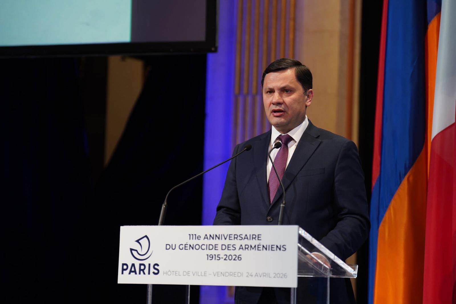 Ապրիլի 24-ին Փարիզի քաղաքապետարանում քաղաքապետ Էմանուել Գրեգուարի հրավերով Ֆրանսիայում Հայաստանի դեսպան Արման Խաչատրյանն ու դեսպանության անձնակազմը մասնակցել են Հայոց ցեղասպանության 111-րդ տարելիցին նվիրված ընդունելությանը։ Միջոցառմանը ներկա էին խորհրդարանականներ, Փարիզի քաղաքային խորհրդի անդամներ, համայնքային, մշակութային և եկեղեցական կառույցների ներկայացուցիչներ, հարյուրավոր ֆրանսահայեր և ֆրանսիացիներ։