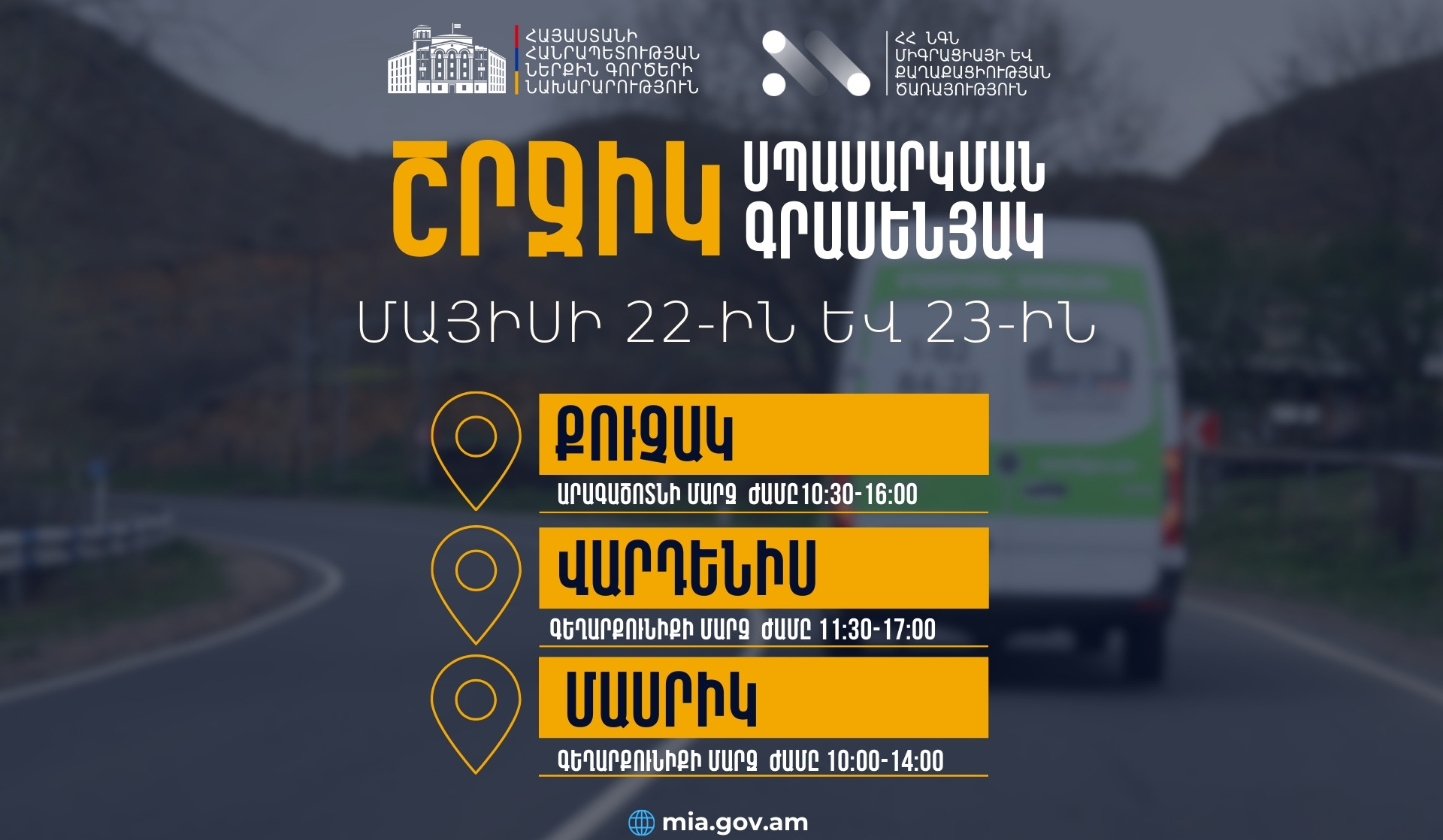 Արարատի մարզի Արտաշատ քաղաքում, Ոստան և Շահումյան գյուղերում 24 ժամ ջուր չի լինի