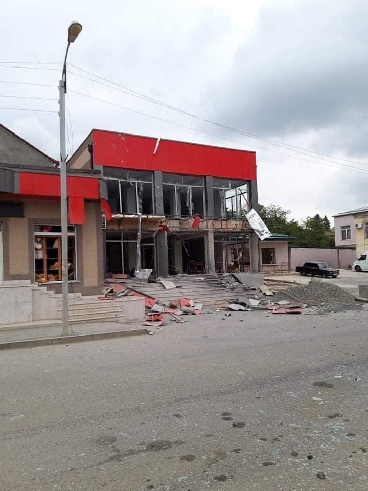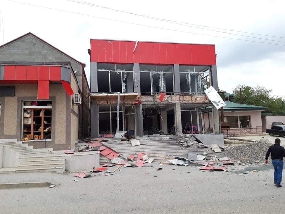 Как мы уже отмечали, среди мирного населения есть 3 жертвы. Прикрепляем фотографии разрушений после бомбардировки Азербайджана".