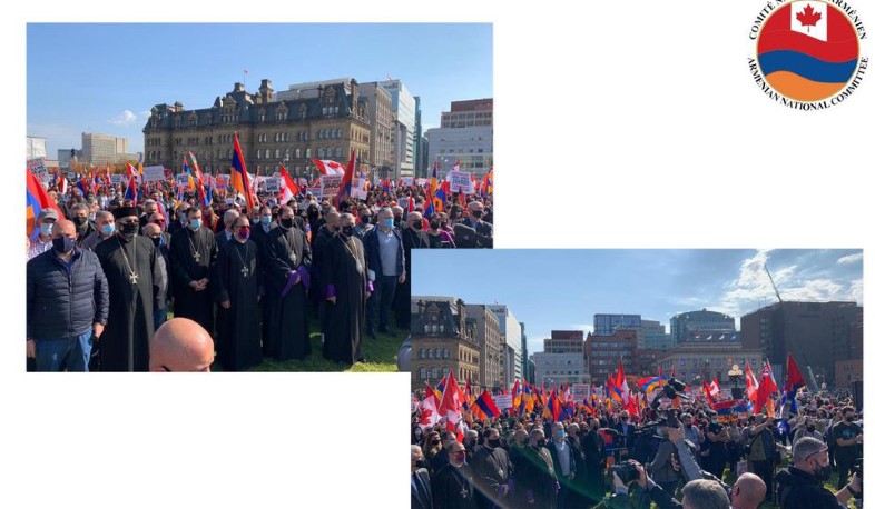 Более 3000 канадцев проводят акцию протеста перед зданием Парламента Канады. Об этом сообщает Армянский национальный комитет Канады.