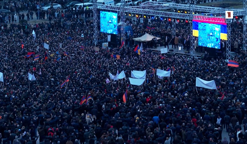Сторонники премьер-министра Армении Никола Пашиняна собрались на площади Республики. Митинг начался с гимна. Собравшиеся минутой молчания почтили память героев, погибших в Арцахской войне, а также жертв беспорядков 1 марта 13 лет назад.