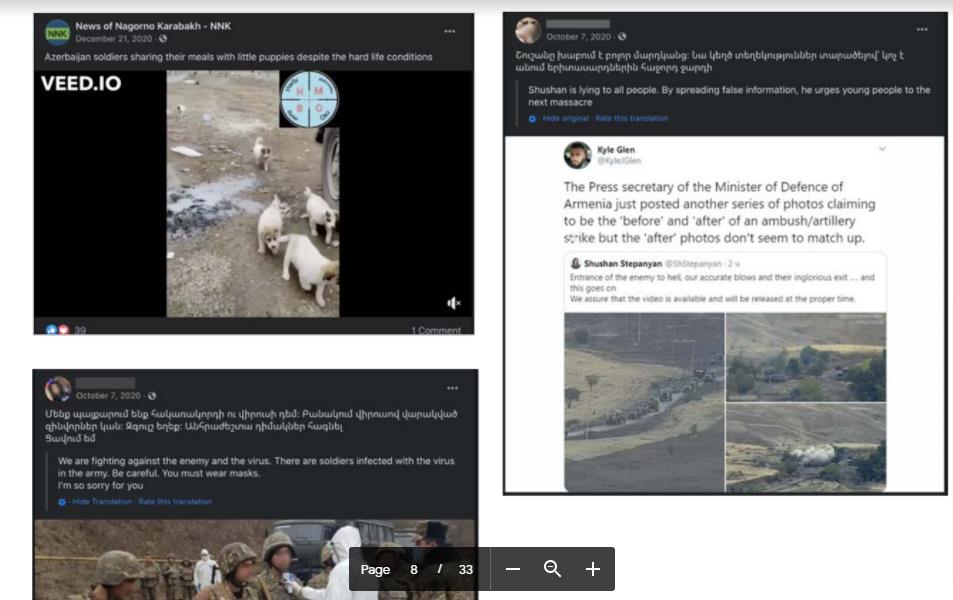 Эксперт по информационной безопасности Самвел Мартиросян сообщил, что Азербайджан появился в отчете Facebook. Была обнаружена большая группа фейков, которая, по всей вероятности, была связана с министерством обороны Азербайджана. Администрация Facebook уничтожила 124 аккаунта Facebook, 15 страниц, 6 групп и 30 аккаунтов Instagram.