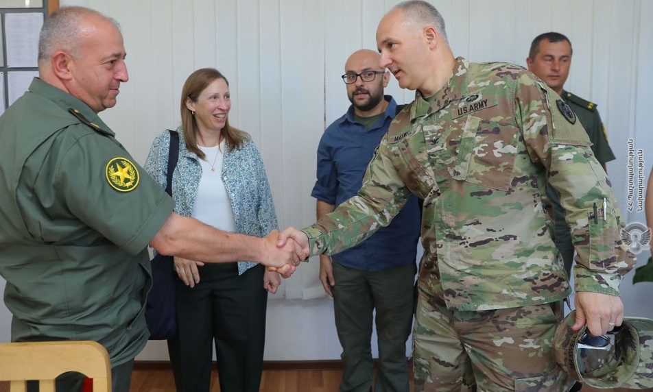 Командир воинской части генерал-майор Араик Арутюнян представил послу ситуацию на армяно-азербайджанской границе, после чего был организован визит на границу на участке Верин Шоржа.