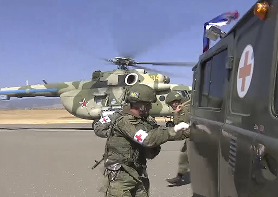 «После эвакуации пострадавшего вертолетом Ми-8АМТШ военные медики выполнили норматив по его погрузке в санитарный автомобиль и транспортировку в полевой госпиталь российского миротворческого контингента, в том числе провели мероприятия для подготовки пострадавшего к эвакуации с наложением повязки, кровоостанавливающего жгута и введением условно раненому обезболивающих энергетиков с целью купирования болевого шока», - рассказал в свою очередь специалист анестезиологии и реанимации медицинского отряда Павел Петров.