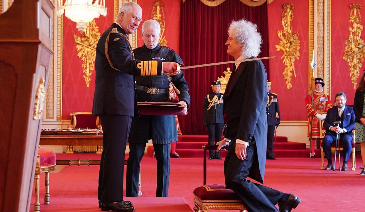 Гитарист группы Queen Брайан Мэй был посвящен в рыцари за заслуги в области музыки и благотворительности. На фотографиях видно, как он общается с королем Карлом III и позирует с наградой после церемонии в Букингемском дворце.